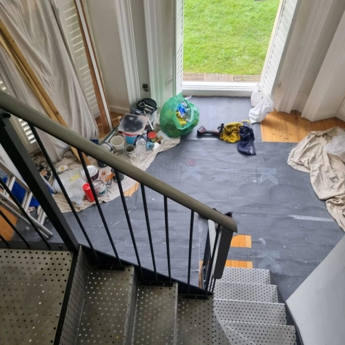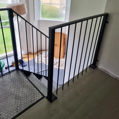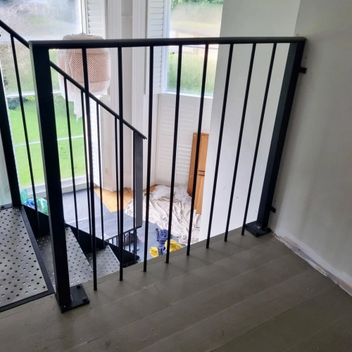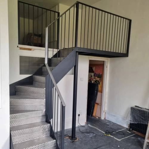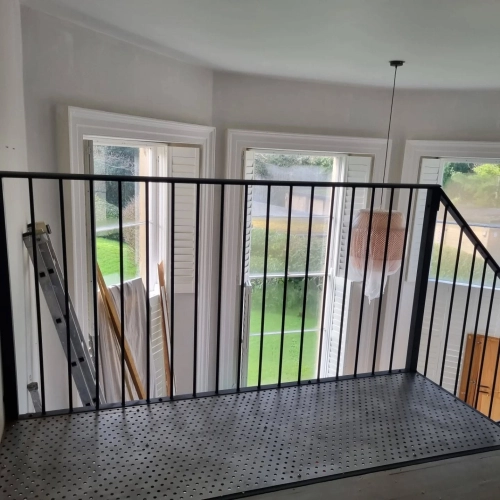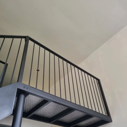 We created a custom interior staircase and balcony leading to a bedroom mezzanine. The build feature...